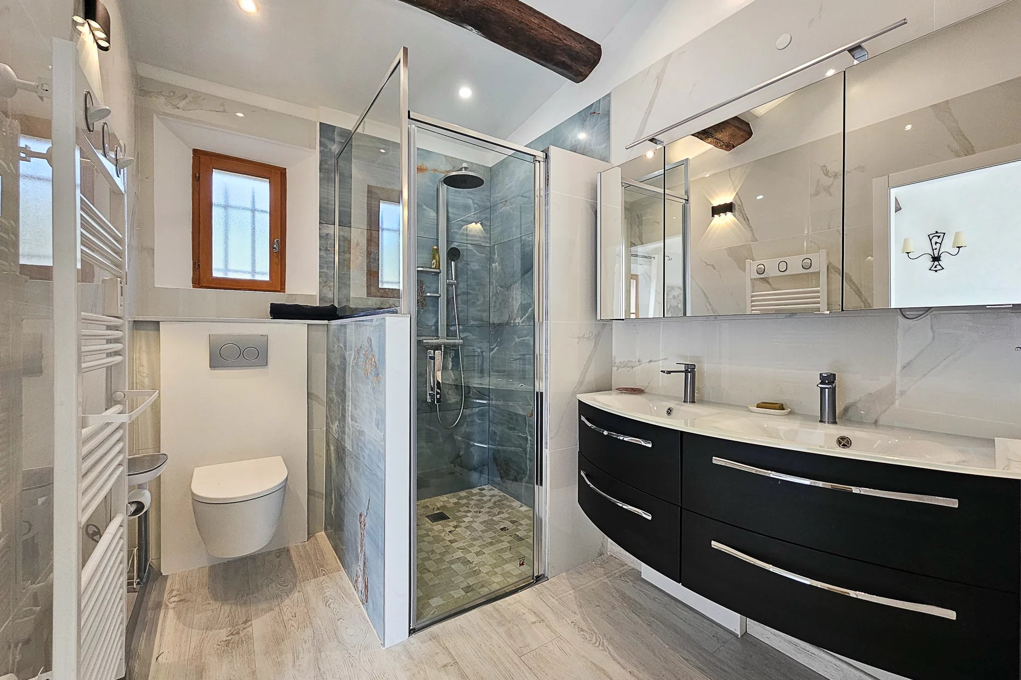 Buiten is alles ontworpen om optimaal te genieten van de Provençaalse levensstijl: een mooie zwembadruimte met een zoutwaterzwembad van 12 bij 7 meter, beveiligd met een rolluik, meerdere terrassen waarvan één met pergola en een overdekt terras, ideaal om gasten te ontvangen. Een jeu-de-boulesbaan maakt dit gezellige geheel compleet.