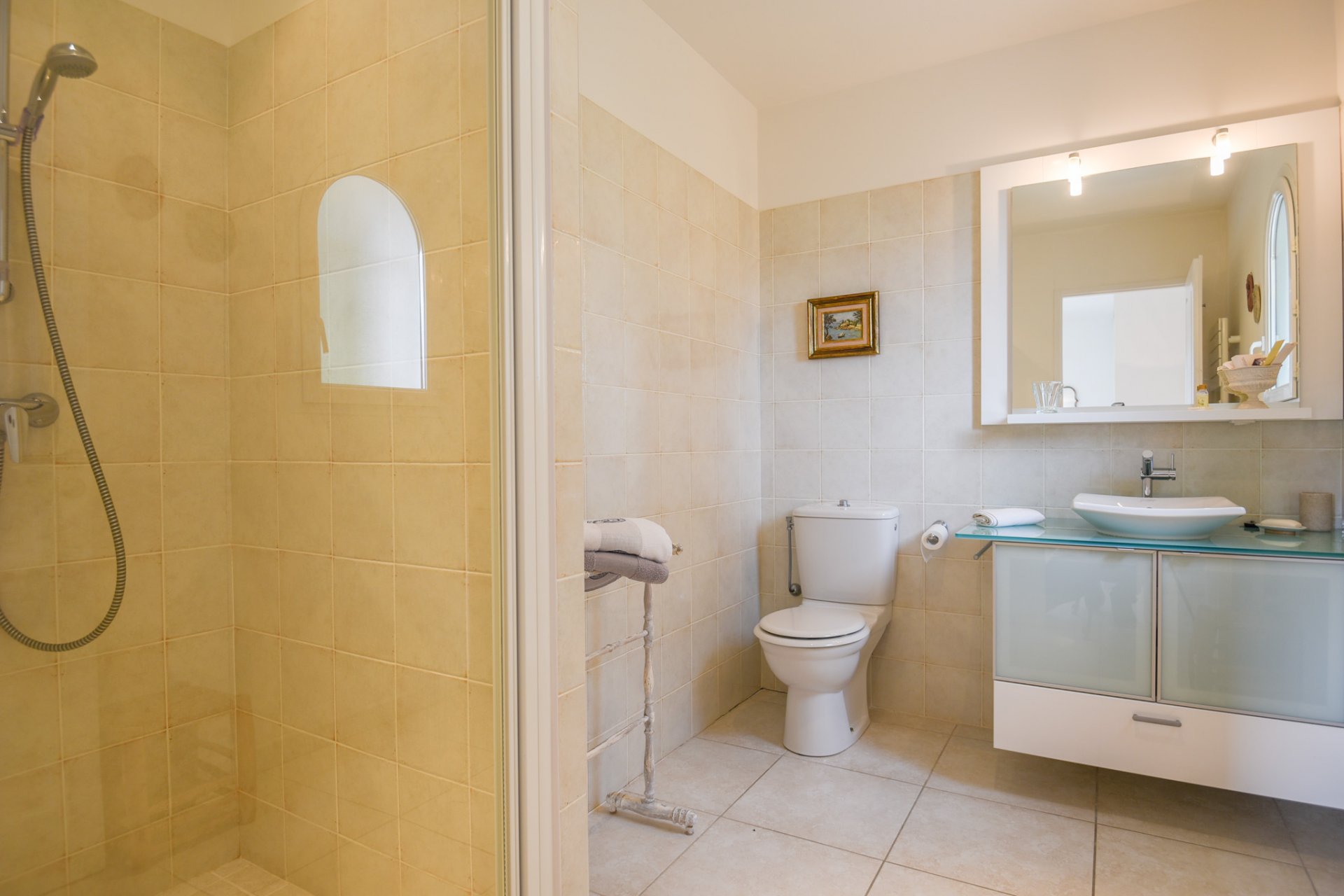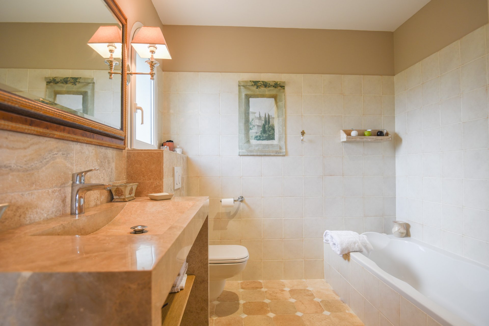 Op de verdieping bevinden zich 4 slaapkamers/suites van ca. 20 -25 m² met elk een eigen badkamer en toilet plus een terras. De suites op het zuiden hebben een eigen balkon dat een uitzicht verschaft over de heuvels. De beide suites aan de achterkant hebben een privé terrasje in de tuin en een eigen opgang.