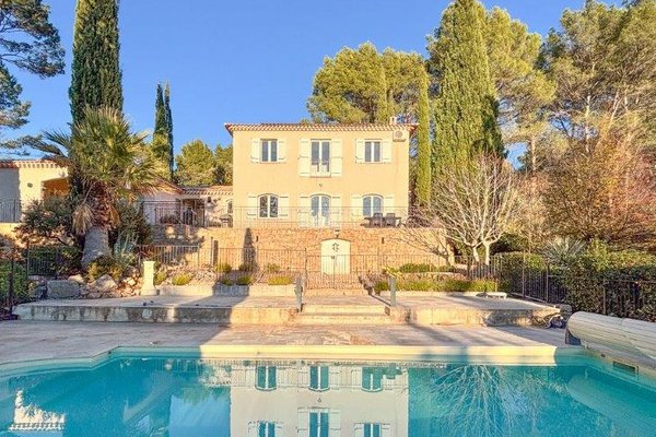 Provençaalse bastide, gebouwd in 1995 en gedeeltelijk gerenoveerd in 2024, op een prachtig perceel van bijna een hectare beplant met olijfbomen op ruime terrassen. Totale woonoppervlakte van circa 160 m² met een hoofdwoning van 130 m² en separaat appartement met één slaapkamer van 30 m², ideaal voor familie, vrienden of voor verhuur.