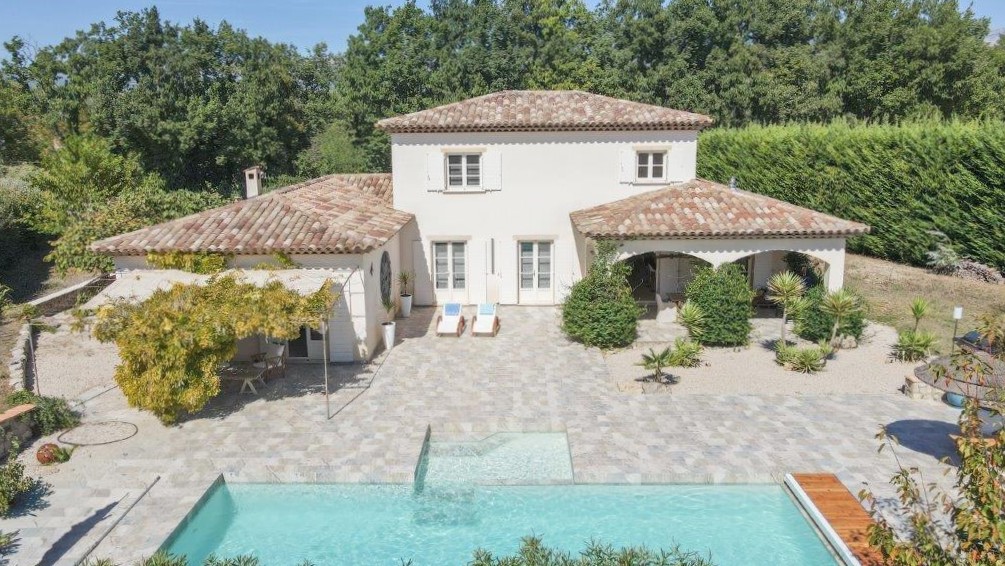 Provence - Var: dominant gelegen, verrassend ruime villa met inpandige gîte en fraai zwembad in uitstekende staat van onderhoud en met panoramisch uitzicht over de omgeving; ca. 1.300 m² onderhoudsvriendelijk terrein op 40 minuten van de Middellandse zee